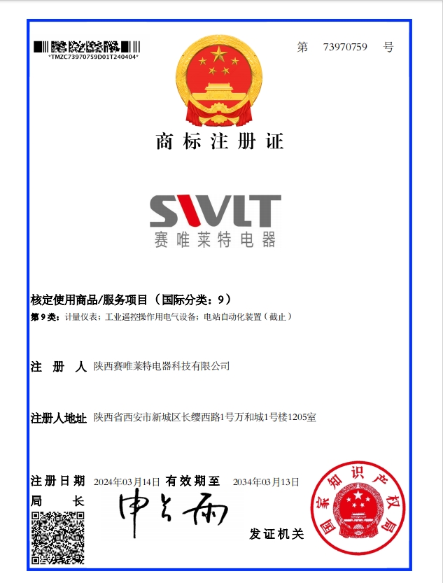 - 2024/4/7陜西賽唯萊特電器科技有限公司已成功申請(qǐng)商標(biāo)注冊(cè)證書(shū)